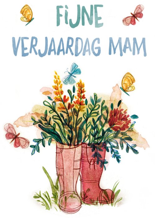 Verjaardagskaart met illustratie en de tekst: Fijne verjaardag mam