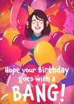 Verjaardagskaart met illustratie en de tekst: Hope your birthday goes with a bang!