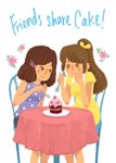 Leuke verjaardagskaart met illustratie en de tekst: Friends share cake!