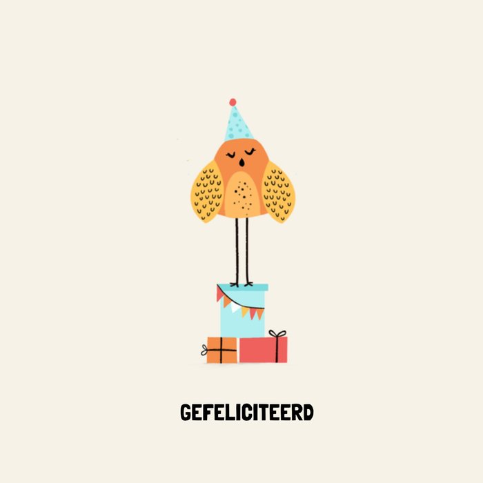 Leuke verjaardagskaart met illustratie en de tekst: Gefeliciteerd