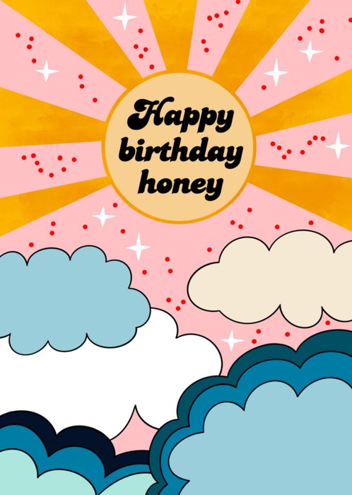 Leuke verjaardagskaart met illustratie en de tekst: Happy birthday honey