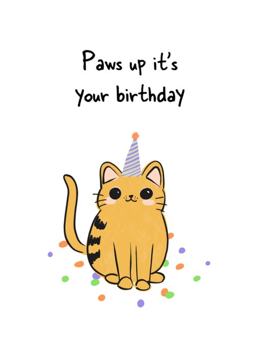 Leuke verjaardagskaart met de tekst: Paws up it's your birthday