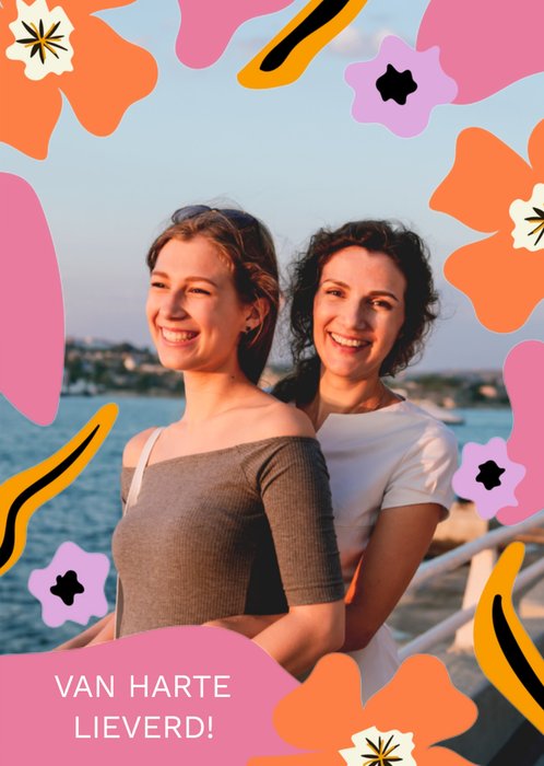 Prachtige verjaardagskaart met een aanpasbare foto, bloemen en de aanpasbare tekst: 'Van harte lieverd!'. Verras je dochter met deze lieve verjaardagskaart van Greetz.
