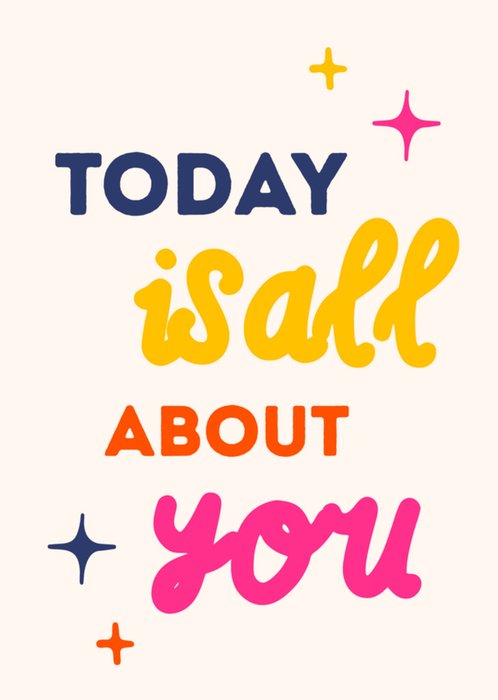 Verras met deze kleurrijke verjaardagskaart met de tekst: Today is all about you.