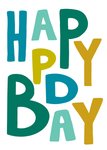 Kleurrijke verjaardagskaart met de tekst: Happy bday.
