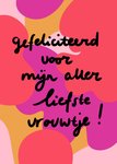 Kleurrijke verjaardagskaart met de tekst: 'Gefeliciteerd voor mijn aller liefste vrouwtje!'. Verras je liefde met deze lieve verjaardagskaart van Greetz.