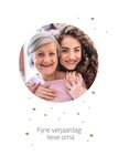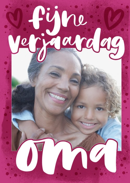 Feliciteer je lieve oma voor haar verjaardag met deze te schattige verjaardagskaart. Op de kaart staat de tekst: Fijne verjaardag lieve oma. Voeg je eigen foto toe.
