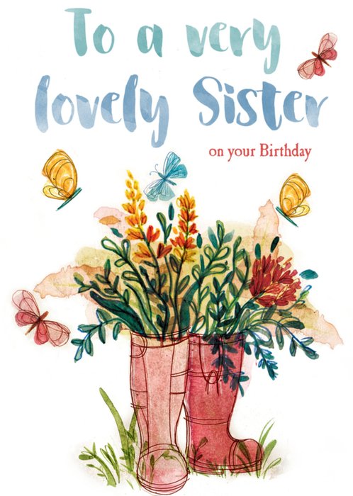 Fleurige verjaardagskaart met de tekst: To a very lovely sister on your birthday.