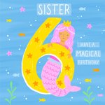 Lieve kaart voor een jarige zus. Op de kaart staat: Sister 6 have a magical birthday.