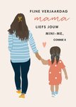 Lieve verjaardagskaart met aanpasbare naam en de tekst: Fijne verjaardag mama liefs jouw mini-me, Connie x