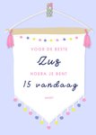 Leuke verjaardagskaart met de tekst: Voor de beste zus hoera je bent 15 vandaag Marit. De naam is aanpasbaar.