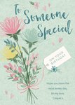 Leuke verjaardagskaart met een bos bloemen en aanpasbare tekst.