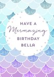 Lieve verjaardagskaart met aanpasbare naam en de tekst: Have a mermazing birthday [naam]