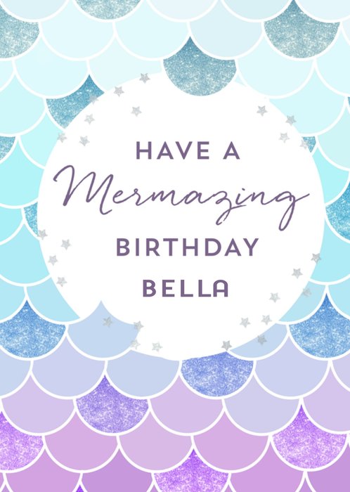 Lieve verjaardagskaart met aanpasbare naam en de tekst: Have a mermazing birthday [naam]