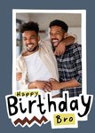Kleurrijke verjaardagskaart met aanpasbare foto en de tekst: 'Happy Birthday Bro'. Verras je broer met deze leuke verjaardagskaart van Moonpig.
