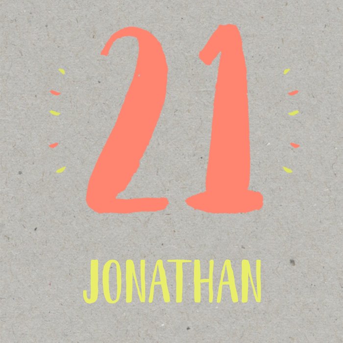 Verjaardagskaart met aanpasbare naam en de leeftijd 21