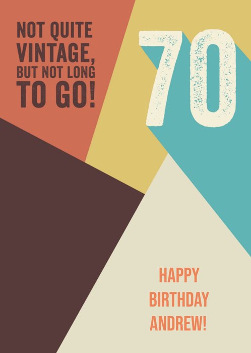 Verras de jarige met deze grappige abstracte verjaardagskaart met leeftijd en aanpasbare naam. Op de kaart staat: Not quite vintage, but not long to go!