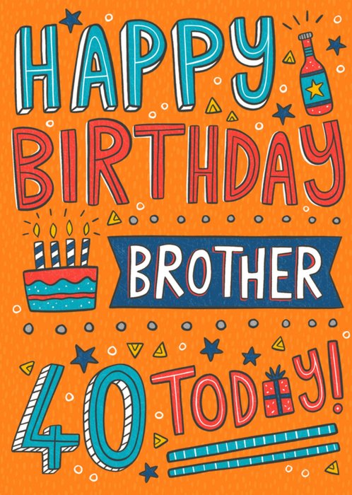 Vrolijke verjaardagskaart met de tekst: Happy birthday brother 40 today!