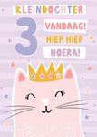 Lieve verjaardagskaart voor een jarige kleindochter met de tekst: Kleindochter 3 vandaag! Hiep hiep hoera!