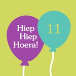 Leuke verjaardagskaart met ballonnen en aanpasbare leeftijd.