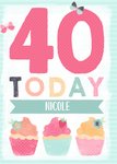 Verjaardagskaart met cupcakes en de tekst: 40 today Nicole. De naam is aanpasbaar.