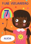 Leuke verjaardagskaart met illustratie en aanpasbare naam.