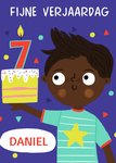 Leuke verjaardagskaart met illustratie en aanpasbare naam.