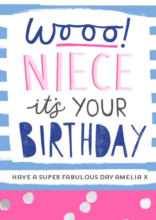 Kleurrijke kaart met de tekst: Niece you are 16 today happy birthday.