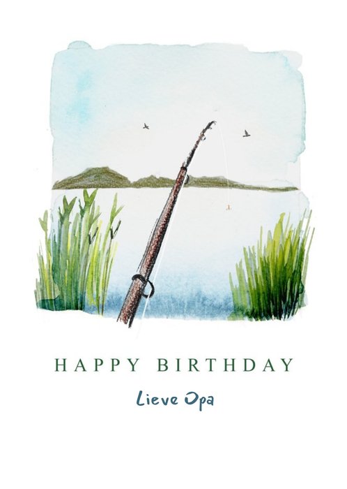 Kleurrijke verjaardagskaart met aquarel illustratie en de tekst: 'Happy Birthday'. Verras je Opa met deze leuke verjaardagskaart van Moonpig.