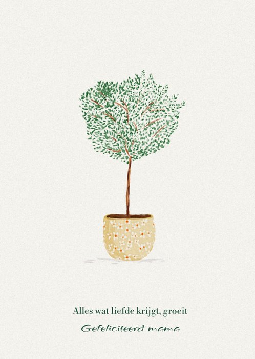 Leuke verjaardagskaart met plant en aanpasbare naam.