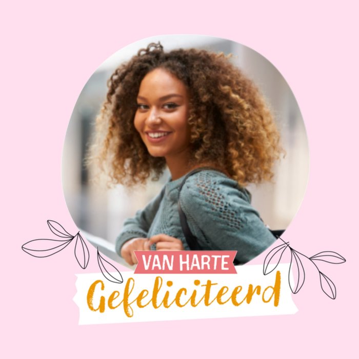 Het is binnenkort feest! Want jij kent iemand die jarig wordt. Stuur een kaartje om een glimlach op iemands gezicht te toveren. Op deze super leuke kaart van Greetz staat: Van harte gefeliciteerd. Je kunt een foto toevoegen.