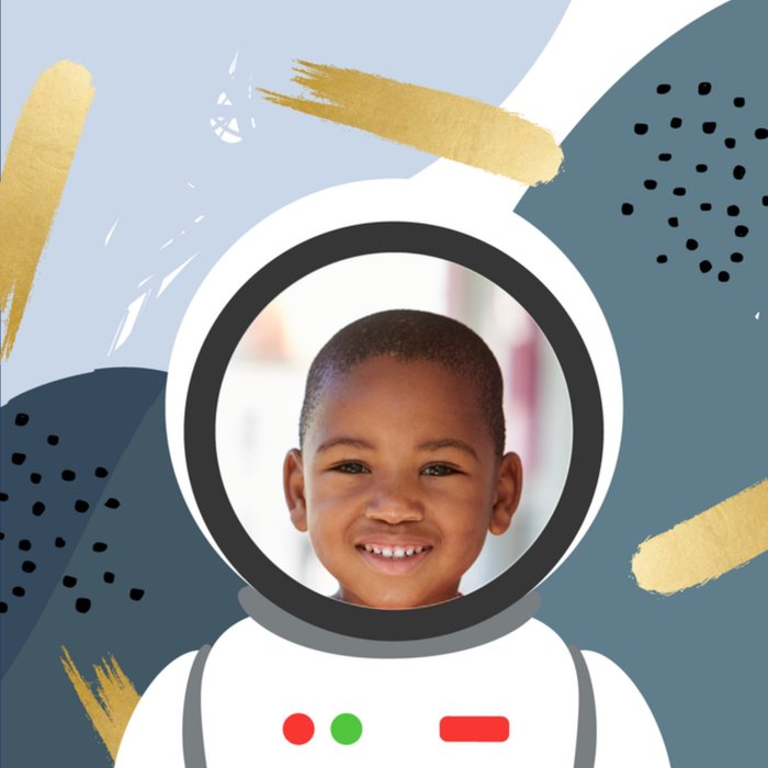 Geweldige verjaardagskaart waar je een foto aantoevoegt waardoor de jarige job net een ruimtevaarder lijkt.