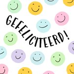Leuke verjaardagskaart met gekleurde smileys en de tekst: Gefeliciteerd!