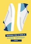 Een verjaardagskaart voor een echte sneaker fan. Op de kaart staat: Wishing you a cool & kickin' birthday Conrad. De naam is aanpasbaar.