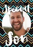 Leuke fotokaart voor een jarige zoon. Op de kaart staat: happy birthday to a special son.