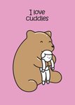 Lieve kaart met een teddybeer en de tekst: I love cuddles.