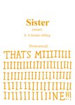 Grappige verjaardagskaart om je zus mee te verrassen. Op de kaart staat: Sister (noun) 1. A female sibling. Pronounced: that's miiiiiiiiiiiiiiiiiiine!!!