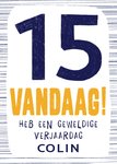 Feest is het! Want jij kent iemand die binnenkort de vlaggen uithangt! Stuur deze leuke verjaardagskaart van Greetz als verrassing. Op de kaart staat: 15 vandaag! heb een geweldige verjaardag [naam].