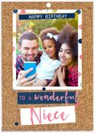 Leuke fotokaart voor een jarig nichtje met de tekst: Happy birthday to a wonderful niece.
