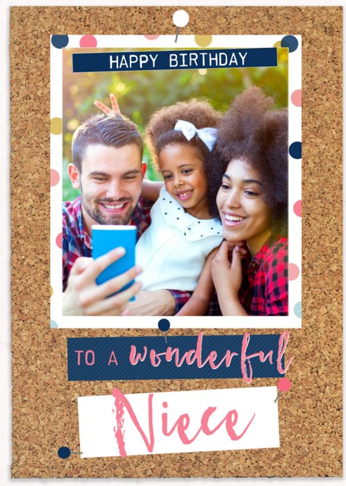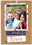 Leuke fotokaart voor een jarig nichtje met de tekst: Happy birthday to a wonderful niece.