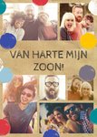 Vrolijke fotokaart met aanpasbare tekst voor een jarige zoon.
