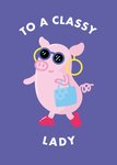 Grappige verjaardagskaart met een biggetje en de tekst: To a classy lady