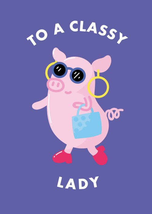 Grappige verjaardagskaart met een biggetje en de tekst: To a classy lady