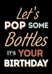 Op deze verjaardagskaart staat: Let's pop some bottles it's your birthday.