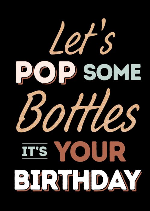 Op deze nieuwjaarskaart staat: Let's pop some bottles it's your birthday.