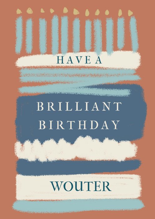 Typografische verjaardagskaart met een verjaardagstaart en de tekst: 'Have a brilliant birthday'. Verras iemand met deze leuke verjaardagskaart.
