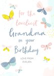 Mooie verjaardagskaart met de tekst: For the loveliest grandma on your birthday love from Evelien.