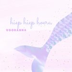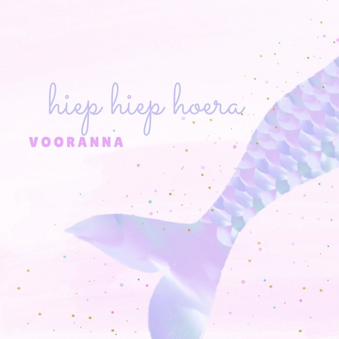 Verjaardagskaart met roze achtergrond en een zeemeerinnenstaart erop met de tekst: Hiep hiep hoera voor Anna. De naam kun je aanpassen.