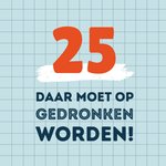 Uitnodiging voor iemand die 25 wordt. En er staat de tekst: Daar moet op gedronken worden!