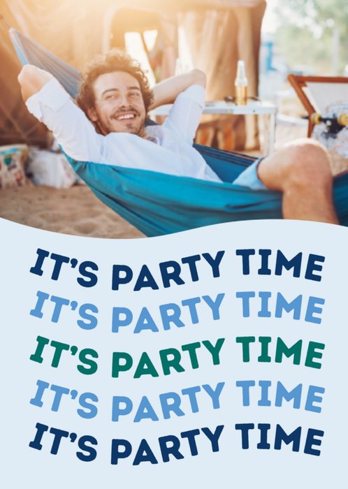 Leuke uitnodiging voor een feestje met de tekst: It's party time. Je kunt ook een foto toevoegen.